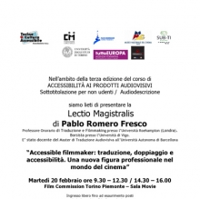 Nell’ambito della terza edizione del corso di ACCESSIBILITÀ AI PRODOTTI AUDIOVISIVI Sottotitolazione per non udenti /Audiodescrizione, martedì 20 febbraio si terrà la Lectio Magistralis di Pablo Romero Fresco, Professore Onorario di Traduzione e...